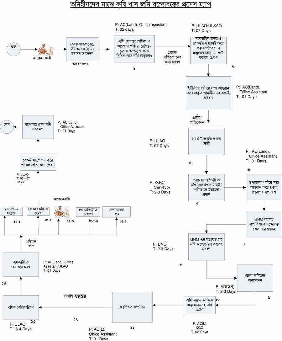 | ২ | কৃষি খাস জমি বন্দোবস্তের প্রসেস ম্যাপ | দেখুন | |