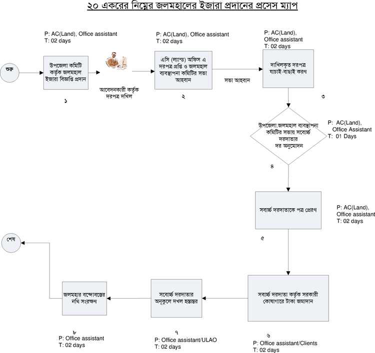 | ৫ | ২০ একরের নিচে জলমহাল ইজারা প্রদানের প্রসেস ম্যাপ | দেখুন |