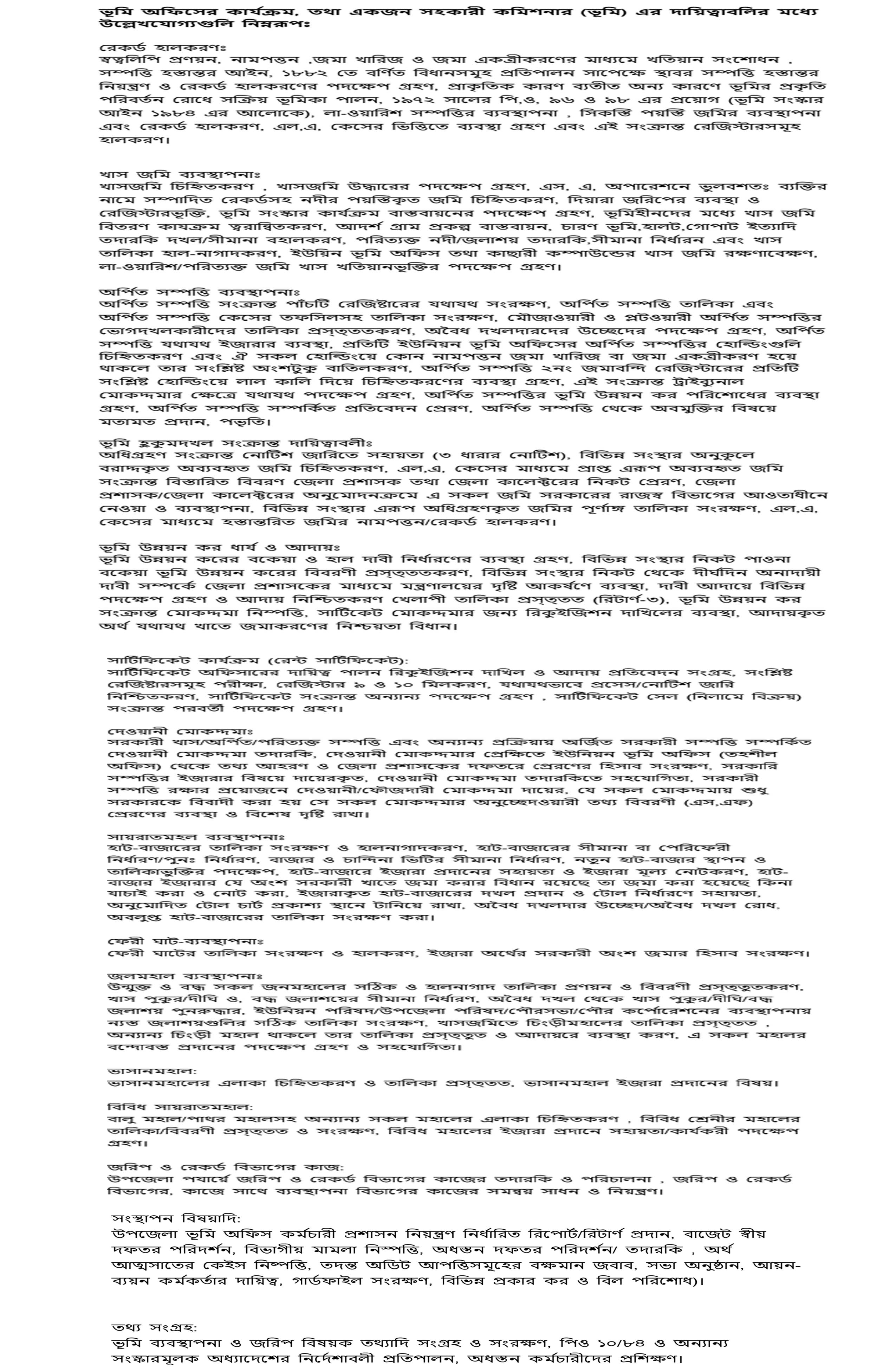 উপজেলা ভূমি অফিস কর্মচারী প্রশাসন নিয়ন্ত্রণ নির্ধারিত রিপোর্ট/রিটার্ণ প্রদান, বাজেট স্বীয় দফতর পরিদর্শন, বিভাগীয় মামলা নিস্পত্তি, অধস্তন দফতর পরিদর্শন/ তদারকি , অর্থ আত্মসাতের কেইস নিষ্পত্তি, তদন্ত অডিট আপত্তিসমূহের বক্ষমান জবাব, সভা অনুষ্ঠান, আয়ন-ব্যয়ন কর্মকর্তার দায়িত্ব, গার্ডফাইল সংরক্ষণ, বিভিন্ন প্রকার কর ও বিল পরিশোধ)।
